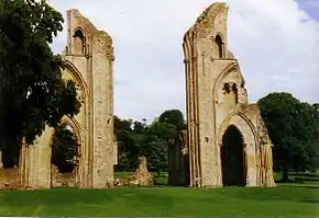 У Середньовіччя статок Гластонбері базувався на славі Гластонберійського абатства, найдавнішого в Англії. Церковна легенда пов'язує його заснування з ім'ям легендарного короля Луція, який немовби ще 166 року запросив до Гластонбері прелатів з Риму. Перша кам'яна церква абатства була зведена 712 року. У монастирі були поховані три англосаксонських королі, хоча паломників більше приваблювала туди ймовірна усипальниця святого Патріка.