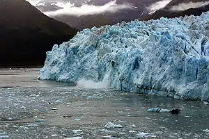 Глетчерний лід — прозора голубувата маса великих крижаних зерен (спотворені тиском крижані кристали), оптичні осі яких спершу орієнтовані безладно, а потім починають набувати переважної орієнтації, що і полегшує рух льоду в льодовиках.