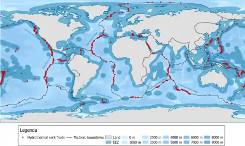 Також ці джерела характеризуються потужними екосистемами, які складають організми, що пристосувалися до високих температур та досить незвичайних умов на океанічному дні[2].