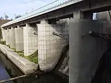 На греблі розташований автошляховий міст з шириною проїзної частини 4,5 м. та залізобетонна естакада шириною 3,0 м. з встановленими на ній підйомними механізмами.