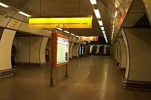 Конструкція станції: пілонна трисклепінна з однією острівною платформою. Має один вихід, у східному торці станції, сполучений тристрічковим ескалатором. Колійні стіни пофарбовані у білий, світло-зелений, зелений, синій, темно-синій і чорний кольори.