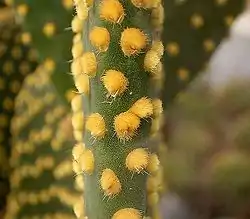 Глохідії зазвичай групуються у кілька десятків пучків, рівномірно розподілених на тілі всього кактуса. Вони виконують захисну роль від травоїдних тварин. Глохідії легко обламуються, тому при найменшому дотику застрягають у шкірі або інших м'яких тканинах людини чи тварини, що спричиняє сильний свербіж та зрештою може призвести до набряку і запалення. Відомий випадок, коли буквально протягом кількох годин загинула корова, що спробувала опунцію. Безліч дрібних глохідій вп'ялися їй в язик і в тканини порожнини рота, швидко розвинувся сильний набряк, який призвів до задухи.[2] По боках глохідій розташовані пилкоподібні, як у гарпуна, загострення. Через це їх дуже складно витягти зі шкіри.