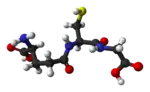 Глутатіон (L-γ-глутаміл-L-цистеїніл-гліцин) — біологічно активний трипептид, який виявляють у всіх організмах. Складається із залишків γ-глутамінової кислоти, цистеїну та гліцину.[1].