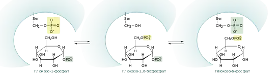 Для того, щоб вступити у метаболічні шляхи клітини, глюкозо-1-фосфат повинен бути перетворений у глюкозо-6-фосфат. Це здійснюється завдяки фосфоглюкомутазі, яка окрім того бере участь у метаболізмі галактози. Реакція відбувається шляхом обміну фосфатними групами між ферментом та субстратом[8]:
