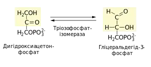 У подальших реакціях гліколізу бере участь тільки одна із фосфотріоз, утворених з фруктозо-1,6-бісфосфату, а саме гліцеральдегід-3-фосфат. Проте інший продукт — дигідроксиацетонфосфат — швидко і зворотно може перетворюватись на гліцеральдегід-3-фосфат (каталізує цю реакція тріозофосфатізомераза)[23].