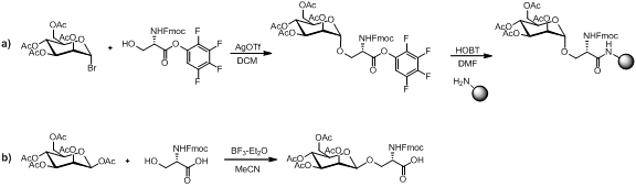- Elofsson, M.; Walse, B.; Kihlberg, J., Building-Blocks for Glycopeptide Synthesis - Glycosylation of 3-Mercaptopropionic Acid and Fmoc Amino-Acids with Unprotected Carboxyl Groups. Tetrahedron Letters 1991, 32, (51), 7613-7616.