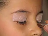 Глітер[1] (англ. glitter — «блищати», «сяяти») — різнокольорові декоративні, дрібно нарубані і розсипчасті блискітки. Глітер часто використовується в косметиці для створення екстравагантних або святкових макіяжів, а також наноситься на нігті як частина нейл-арту. Частинки глітера помітні неозброєним оком на шкірі й надають їй активного блиску, подібно пайєток, які виконують ту ж функцію, використовуючись на одязі і аксесуарах.