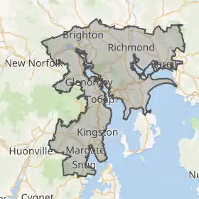 Столична область Великого Гобарта має у складі три самоврядних міста — Гобарт, Гленорчі і Кларенс, плюс області Кінгброу та Брайтон. Сучасне місто розрослося на пагорб Веллінгтон, а приміські області займають обширні території на обох берегах річки Дервент.