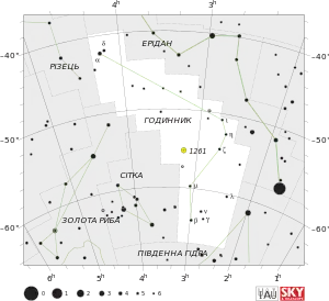 | Найяскравіша зоря | Альфа Годинника 3,85m |