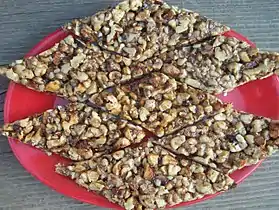 Складники: 1 кг очищених горіхів, 1 кг меду, 0,25 склянки цукрової пудри[1]