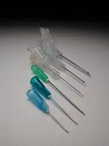 - Ін'єкційні голки — призначені для введення рідких речовин (ін'єкцій), у тому числі й «крапельницями»