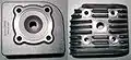 Нижня (ліворуч) і верхня (праворуч) головки циліндра одноциліндрового двотактного двигуна. Отвір в центрі призначений для загвинчування свічки запалювання, чотири отвори на краях - для встановлення болтів кріплення