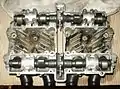 Головка блоку циліндрів з верхнім розміщенням розподільного валу та повітряним охолодженням від Suzuki GS550. Можна бачити два розподільних вали, зірочку приводу та ребра охолодження