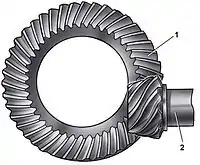 Конічна головна передача стала широко застосовуватись з 1913 р., коли фірма Gleason розробила зачеплення з коловим зубцем. Конічна передача характеризується високим ККД (0,97—0,98) обумовленим незначним тертям ковзанням між зубцями. Недолік — значні габарити й більша у порівнянні з іншими передачами шумність. Для зниження останнього застосовують шестерні зі спіральними зубцями.