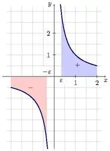 Очевидно, що f ∈ R([1/ε, −1−ε]) ∩ R([−1+ε, 1−ε]) ∩ R([1+ε, 1/ε]) для всіх ε ∈ (0, 1) (бо є обмеженою на кожному з цих відрізків). Перевіримо інтегровність функції f в сенсі Коші: