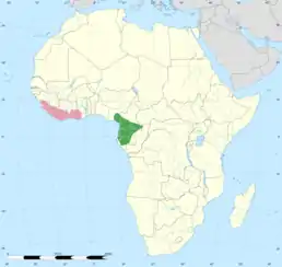 ![]() Мапа поширення представників роду: Picathartes gymnocephalus рожевий, Picathartes oreas зелений | ||||||||||||||||||||