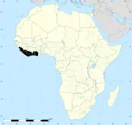 Гологолов західний поширений в Західній Африці — трапляється в Гвінеї, Сьєрра-Леоне, Ліберії, Кот-д'Івуарі, Гані. Мешкає в низинних тропічних лісах на висоті до 800 м, в кам'янистій і горбистій місцевості на схилах пагорбів і гір.