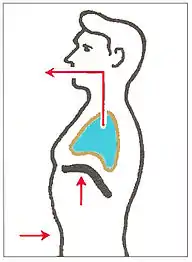 До голосового апарату людини входять ротова і носова порожнини з додатковими порожнинами, глотка, гортань з голосовими зв'язками, трахея, бронхи, легені, грудна клітка з дихальними м'язами і діафрагмою, м'язи черевної порожнини.