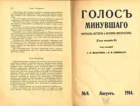 Видавався в Москві (1913—1923). До 1919 року видавався щомісяця, потім виходив нерегулярно (всього 65 номерів). У 1926—1928 роках видавався в Парижі під назвою «Голос минулого на чужій стороні».