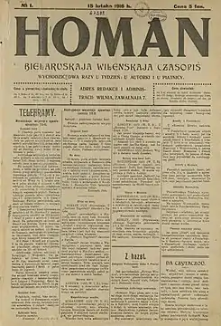 Виходила у Вільні два рази на тиждень з 15 лютого 1916 року по 24 грудня 1918 року білоруською мовою латиницею, з № 61 11 вересня 1916 року також ще кирилицею[1], з заголовками «Гоман» і «Homan».