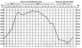 підтримується гомеостатичним механізмом з температурними давачами, серед іншого, гіпоталамусом мозку[4]. Однак задана температура регулятора постійно скидається[5]. Наприклад, основна температура тіла у людини змінюється протягом дня (тобто має циркадний ритм), до того-ж найнижчі температури виникають вночі, а найвищі — вдень. Інші нормальні коливання температури обумовлюють ті, що стосуються менструального циклу[6]. Уставка регулятора температури під час зараження скидається, щоби викликати жар. Організми здатні дещо пристосовуватися до різних умов, таких як зміни температури або рівня кисню на висоті, шляхом процесу акліматизації.