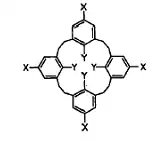 Наприклад, гомо-калікс[4]арен з полярними замісниками X та Y.