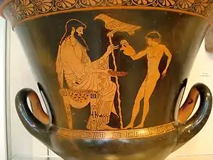 Поет Піндар прославився піснями, присвячених переможцям олімпійських змагань. У них він неодноразово прославляє їх красу переможців, і згадує міфи про Пелопса[86], Ганімеда[87], Кініра[88], Ахілла і Патрокла.