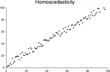 Гомоскедастичність — незалежність дисперсії випадкових складових від номера спостереження. Вимога гомоскедастичності є однією з умов класичної моделі лінійної регресії. При її виконанні оцінки звичайного методу найменших квадратів мають найменшу дисперсію серед усіх незміщених оцінок коефіцієнтів лінійної моделі. У випадку значної залежності дисперсії випадкових складових від незалежних змінних має місце гетероскедастичність.