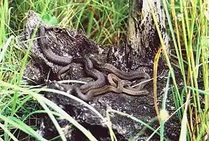 Різноманіття біотопів даного природного комплексу сприяє розвитку різних видів наземних хребетних тварин. Тут трапляється близько 20 видів земноводних та плазунів. На піщаних кучугурах на узліссях бору мешкає рідкісна різнобарвна ящірка — плазун, що зберігся у незмінному вигляді з дольодовикового періоду.