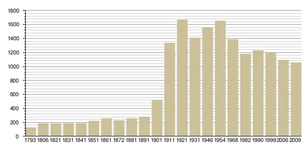 Динаміка населення (base Cassini de l'EHESS pour les nombres retenus jusque 1962[3], base Insee à partir de 1968 (population sans doubles comptes puis population municipale à partir de 2006)[4] · [5] ):