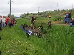 У разі перекидання автомобіля на бік або на дах, можливі ті ж самі сценарії. Якщо спеціальна бригада оперативно поставить такий автомобіль на колеса, учасник з заїзду виключається. При цьому очки, зароблені до перекидання, зберігаються. Але якщо гонщик зробить спробу продовжити заїзд, ці очки анулюються, а гонщик знімається з дистанції чорним прапором.