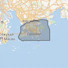![]() Розташування {{{назва_род}}} Гонконг розташований на півострові і ряді островів на південному узбережжі Китаю, на схід від дельти річки Чжуцзян. Він межує на півночі з провінцією Ґуандун | |||||