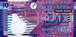 ![]() Банкнота 10 доларів випущена Управлінням грошового обігу Гонконгу | |