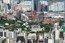 | Кампус Гонконзького політехнічного університету в Хунхамі, вигляд від дороги Хун-Чун. | |