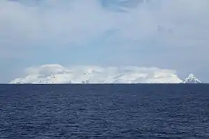 ![]() Вигляд острова Кларенс з північного сходу та гори Ірвінґ (ліворуч) та гори Ірвінґ (ліворуч) | ||||
