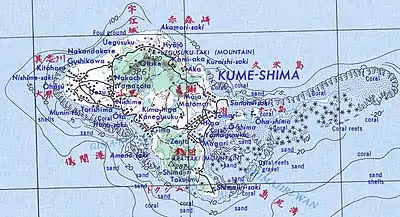 Карта острова Куме, гора Ара (287) на південному заході острова