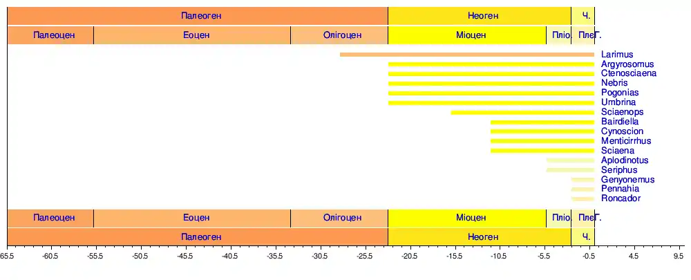 - Froese R., Pauly D. (eds.) (2006). Родина Sciaenidae на FishBase. Версія за May 2006 року.
