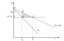 На ринку чистої та досконалої конкуренції компанія, що приймає ціну, стягує планку в точці Е, ситуація, коли гранична вартість дорівнює ціні. У монополістичній ситуації компанія є виробником цін і витрат у точці Н, де граничні витрати дорівнюють граничному доходу. Отже, сухі соціальні втрати, пов'язані з існуванням монополії, є поверхнею MHE на малюнку навпроти. Трикутник, що представляє суху соціальну втрату монополіста, називають трикутником Харбергера. Прибуток, отриманий монополістом, менший, ніж втрати споживачів.