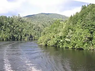 Ліворуч - вигин в нижній течії річки Гордон По центру - річка Гордон в місці злиття з річкою Франклін Праворуч - 140-метрова дамба Гордон | ||||||||||