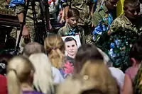 Пластун тримає портрет Миколи Гордійчука. Кам'янець-Подільський, 25 липня 2015
