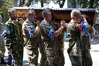 Військові несуть труну по місту