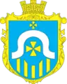 В синьому щиті — срібна підкова шипами донизу, у якій золотий лапчастий хрест, супроводжувана згори меншим золотим лапчастим хрестом, внизу — п'ятьма золотими нитяними стовпами, вершини яких утворюють півколо дугою донизу. Автор — Сергій Ткачов.