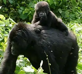 - гірського Gorilla beringei beringei (Matschie 1903). Чисельність популяції близько 700 особин. Поширена на вулканічних схилах Руанди, Уганди та Демократичної республіки Конго[1].