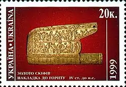 Поштова марка України з зображенням золотої обкладки гориту.