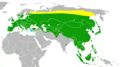 ![]() Поширення в Євразії та Африці Гніздовий ареал Цілий рік Міграції | ||||||||||||||||