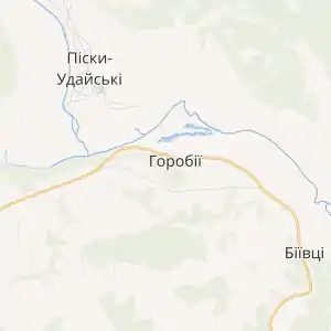 Село Горобії знаходиться на правому березі річки Удай, вище за течією на відстані 4 км розташоване село Гінці, нижче за течією на відстані 1 км розташоване село Біївці, на протилежному березі - село Піски-Удайські (Чорнухинський район).