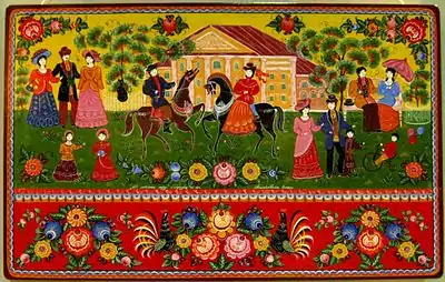 Городецький розпис — російський народний художній промисел. Існує із середини XIX століття (18 століття), в районі міста Городець. Яскравий, лаконічний Городецький розпис (жанрові сцени, фігурки коней, півнів, квіткові візерунки), виконаний вільним мазком з білою та чорною графічною каймою, прикрашав прядки, меблі, віконниці, двері. У 1936 році було засновано артіль (з 1960 року на її основі було створено фабрику «Городецкая роспись»), яка виготовляла сувеніри. Найвідоміші майстри — Д. І. Гаків, А. Є. Коновалов, Г. А. Мазін.
