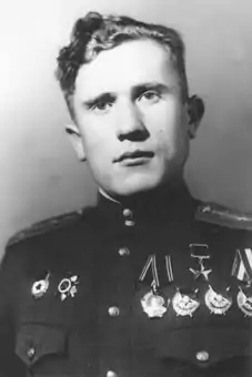 Заступник командира ескадрильї 111-го гвардійського винищувального авіаполку (10-а гвардійська винищувальна авіадивізія, 10-й винищувальний авіакорпус, 2-га повітряна армія, 1-й Український фронт) до липня 1944 року здійснив 214 бойових вильотів, в 47 повітряних боях особисто збив 24 і в групі — 1 літак ворога.