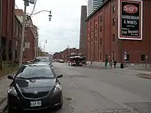 До Горілчаного кварталу можна дістатися автобусним маршрутом 121-ї Форт-Йорк-Еспланейд Комісії транзиту Торонто, а з червня 2016 року трамвайна лінія 514 Cherry має східну кінцеву точку на петлі Горілчаного кварталу на схід від історичного району, забезпечуючи рух вздовж Кінґ-стріт через центр міста на захід, аж до Дафферін-Ґейт-Луп у Ліберті-Вілледж .