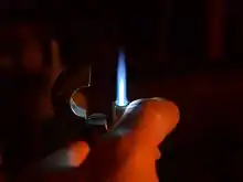 Полум'я при горінні вуглеводневих палив у пальнику Бунзена, таких як пропан чи бутан, може мати різний колір залежно від співвідношення пального і повітря. При горінні в дифузійному режимі без подачі повітря в пальник полум'я забарвлене в жовтий або червонуватий колір, викликаний свіченням розжарених мікрочастинок сажі. При підмішуванні невеликої кількості повітря на виході з пальника виникає неяскравий синій конус полум'я. Подальше збільшення подачі повітря призводить до виникнення двох конусів полум'я, внутрішнього яскравого синьо-зеленого і зовнішнього синьо-фіолетового, набагато менш інтенсивного[25].